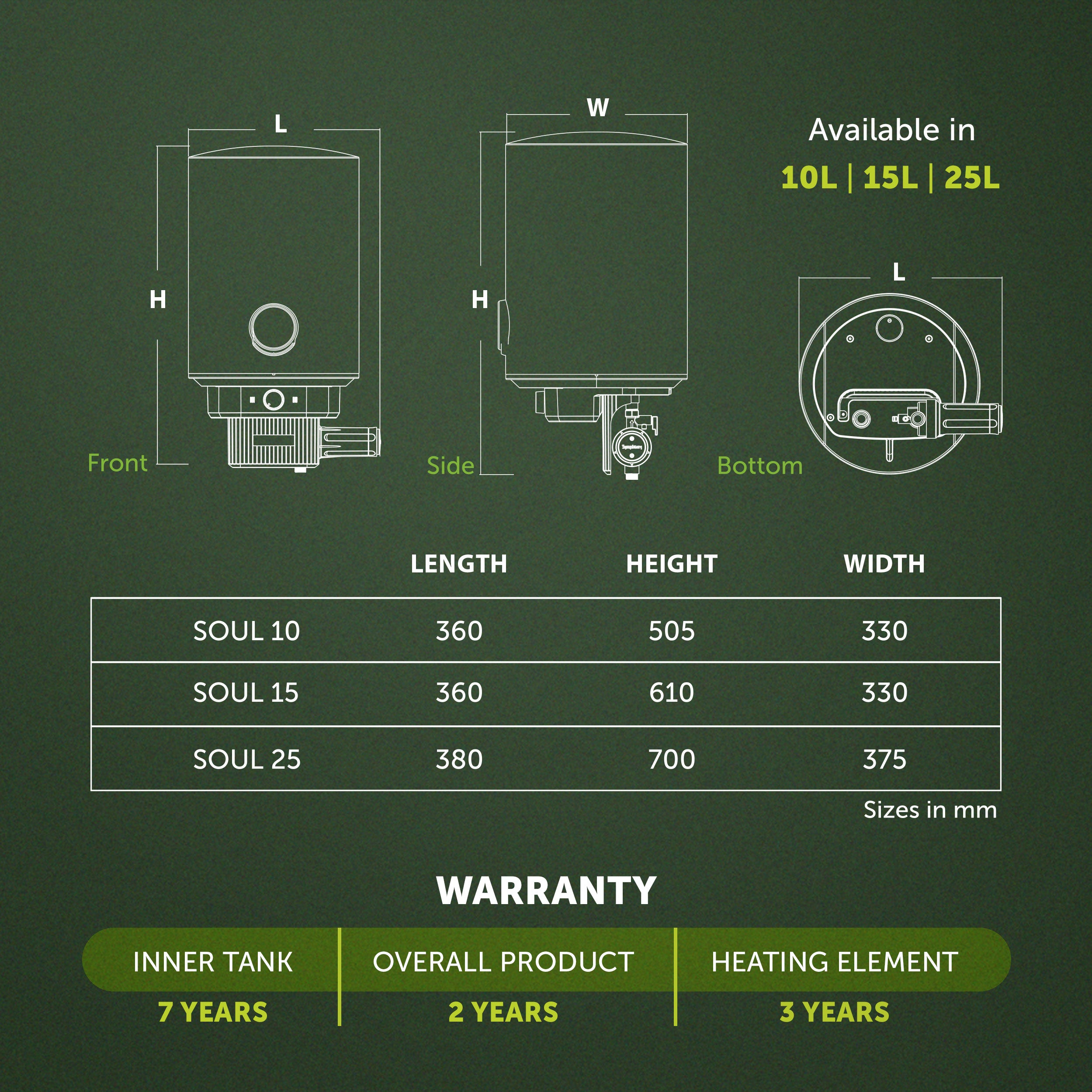 SOUL Hair Fall Control Storage Geyser | 10 Ltr, 15 Ltr, 25 Ltr