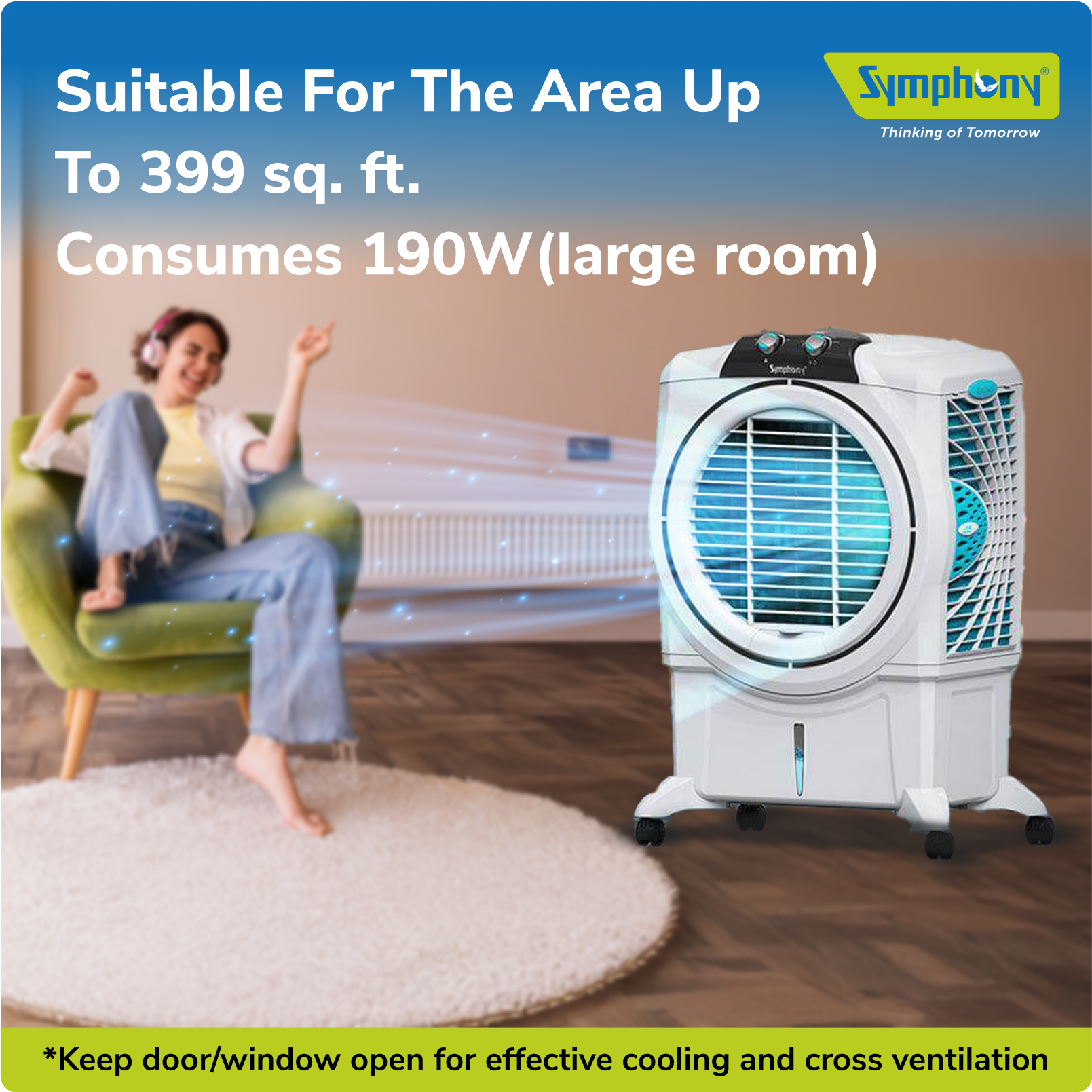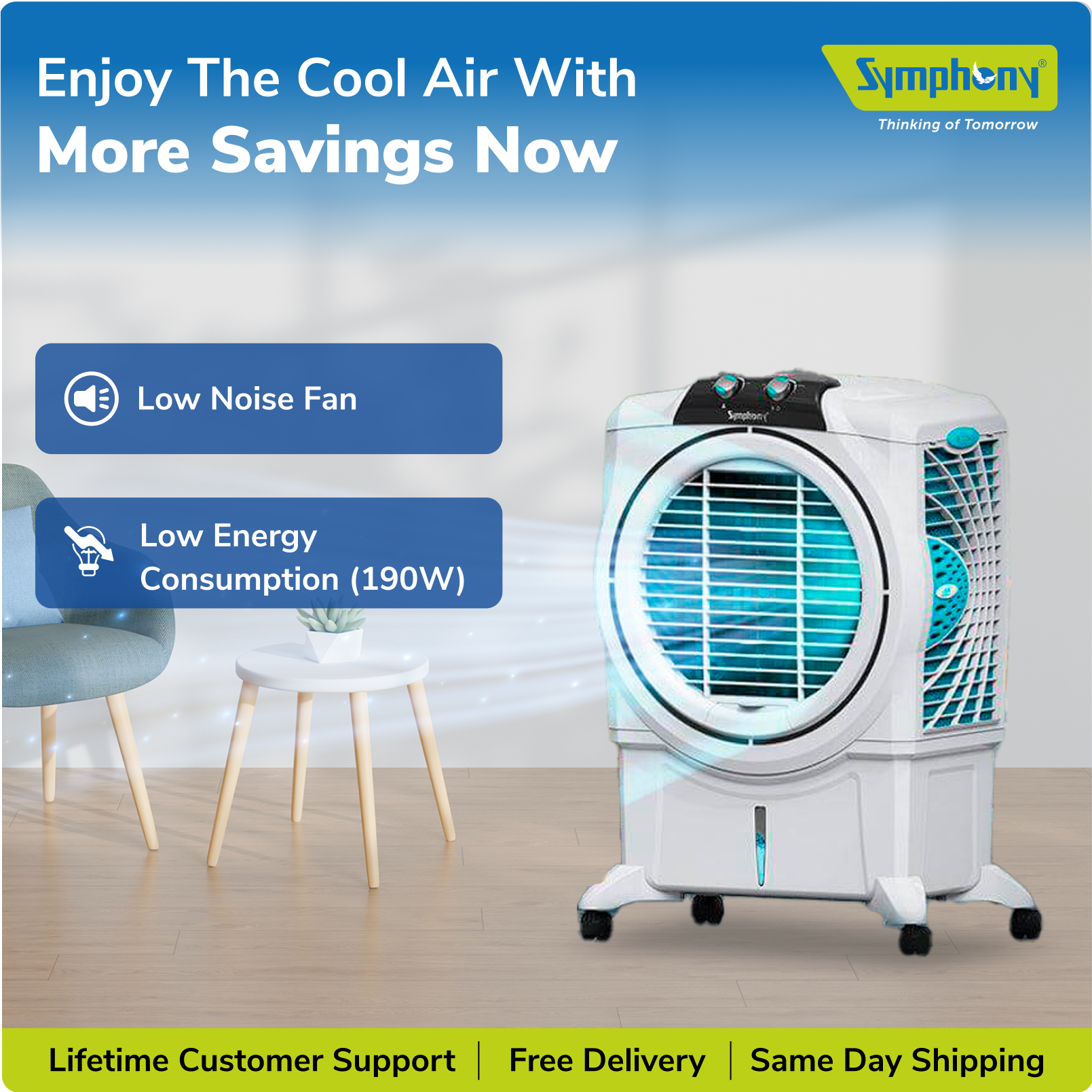 Symphony Sumo 75 XL IS an all-new powerful cooler with specially designed front grill for maximum air delivery. It has unmatched aesthetics and a very large 75-liter tank capacity for long hours of uninterrupted cooling. Furthermore, it comes with hassle-free water filling.