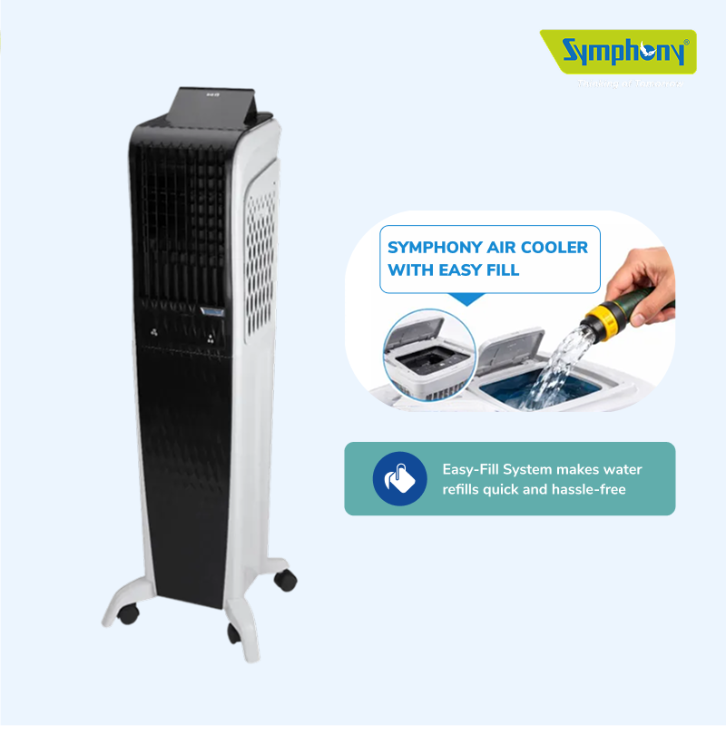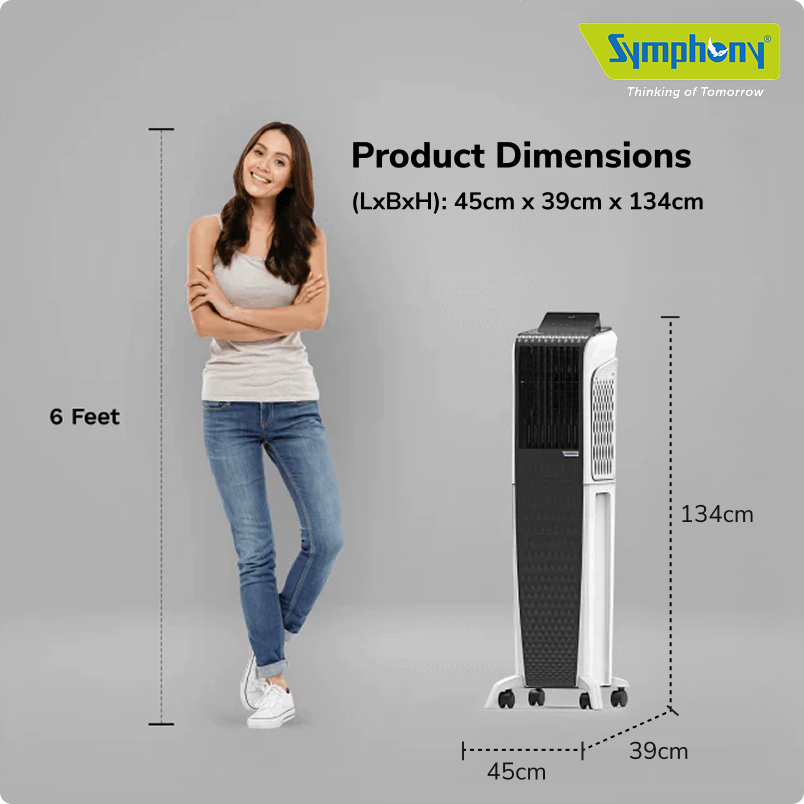 Mimic the comfort of a cool breeze in your home with the Symphony Diet 3D. The supercool air cooler has ergonomically designed fans that enable maximum air throw. This energy-efficient device consumes very low power and is inverter-compatible.