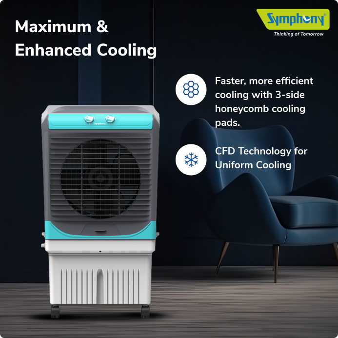 With its 3-side cooling design, the Maxwind 80XL+ maximises every drop of water and every burst of air to deliver consistent, high-performance cooling across your space.