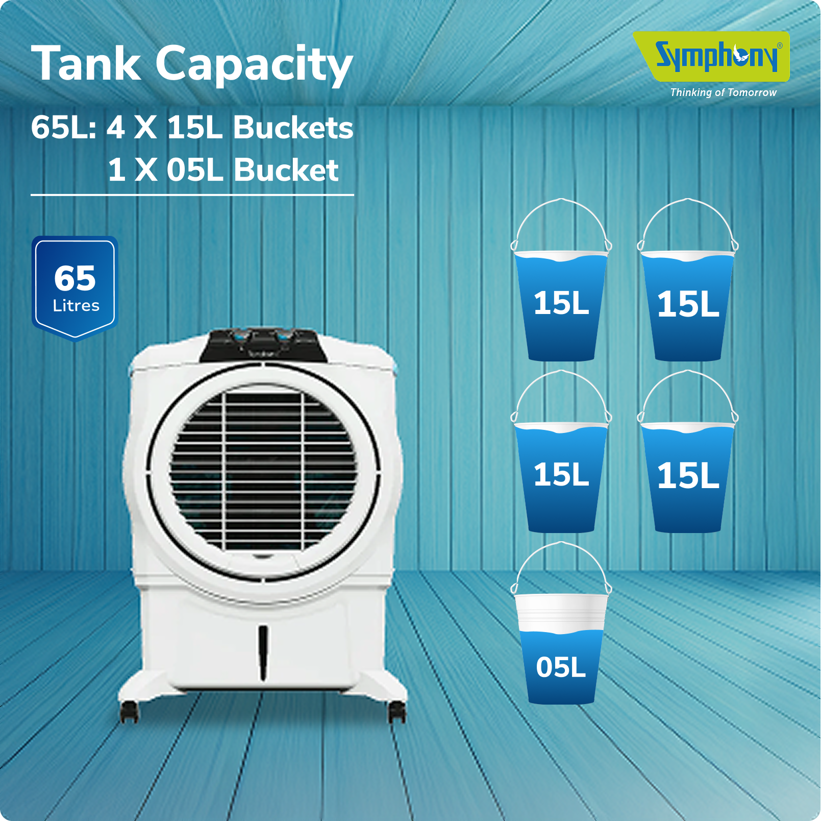 Symphony Sumo 75 XL IS an all-new powerful cooler with specially designed front grill for maximum air delivery. It has unmatched aesthetics and a very large 75-liter tank capacity for long hours of uninterrupted cooling. Furthermore, it comes with hassle-free water filling.