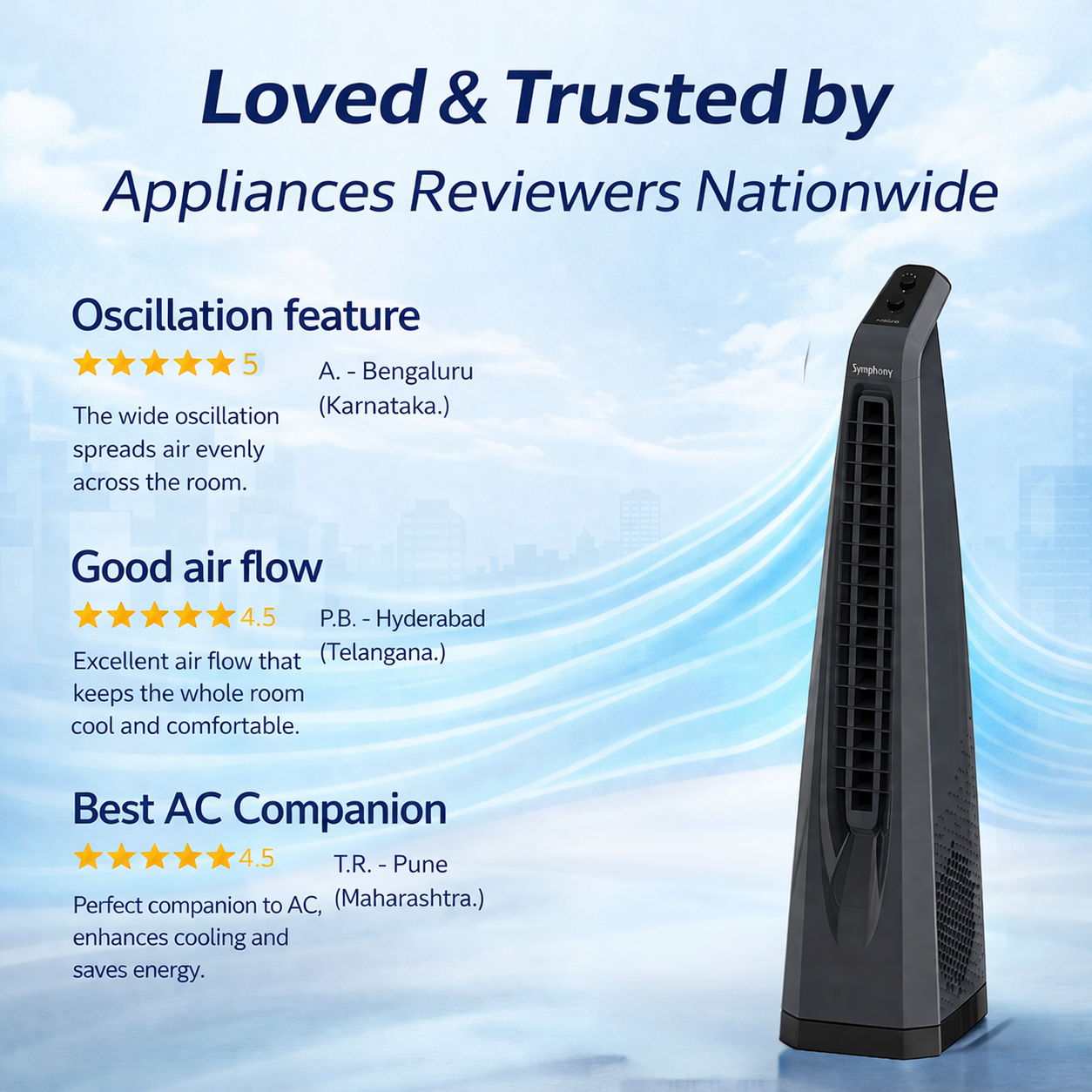 Surround Grey | Tower Fan | Knob Control | Bladeless Turbo ThrowTM (BLTT) Technology Buy Now |