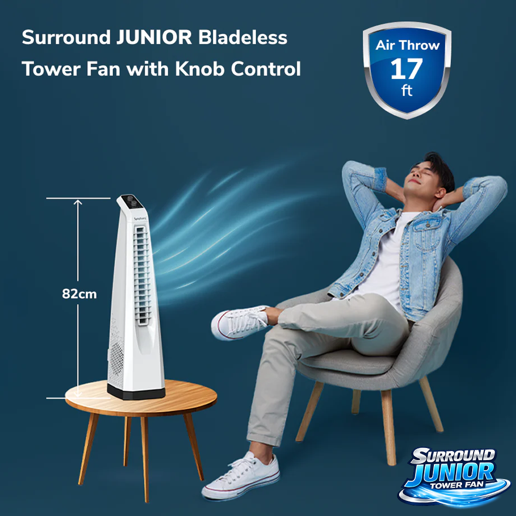 Surround JUNIOR | Tower Fan | Knob Control | Bladeless Turbo ThrowTM (BLTT) Technology