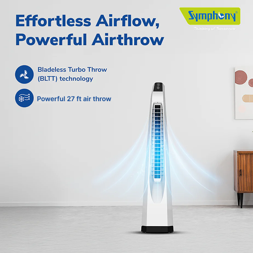 Surround Senior White Bladeless Tower Fan | Knob Control | Bladeless Turbo Throw (BLTT) Technology