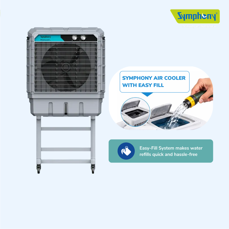 Unlike average coolers, Symphony offers a wide inlet mouth so that you can quickly fill up the water reservoir. Also, there is no water spillage on the office/shop floor.