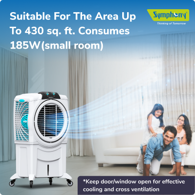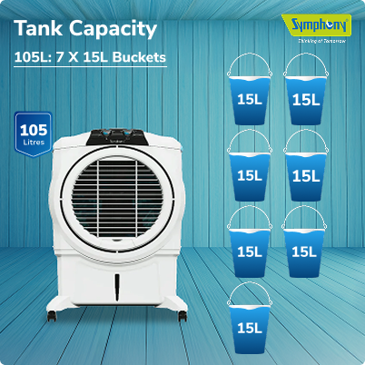 Symphony Sumo 115 XL, an all new powerful cooler with specially designed front grill for maximum air delivery, the coolers with unmatched aesthetics, very large 115 litre tank capacity for long hours uninterrupted cooling. The new desert cooler comes with ease of hassle free water filling. Get ready to be excited with the performance.