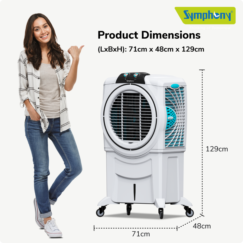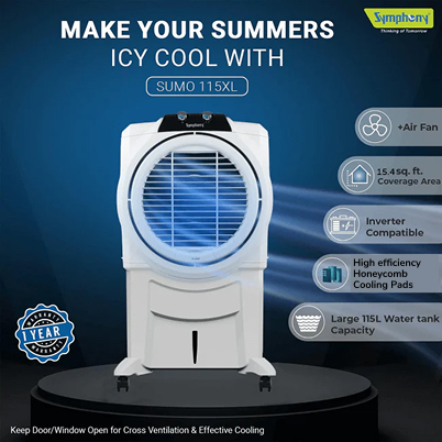 Symphony Sumo 115 XL, an all new powerful cooler with specially designed front grill for maximum air delivery, the coolers with unmatched aesthetics, very large 105 litre tank capacity for long hours uninterrupted cooling. The new desert cooler comes with ease of hassle free water filling. Get ready to be excited with the performance.